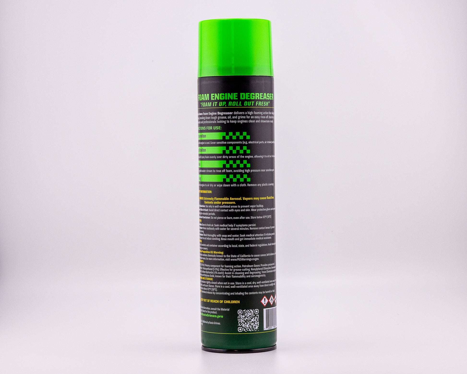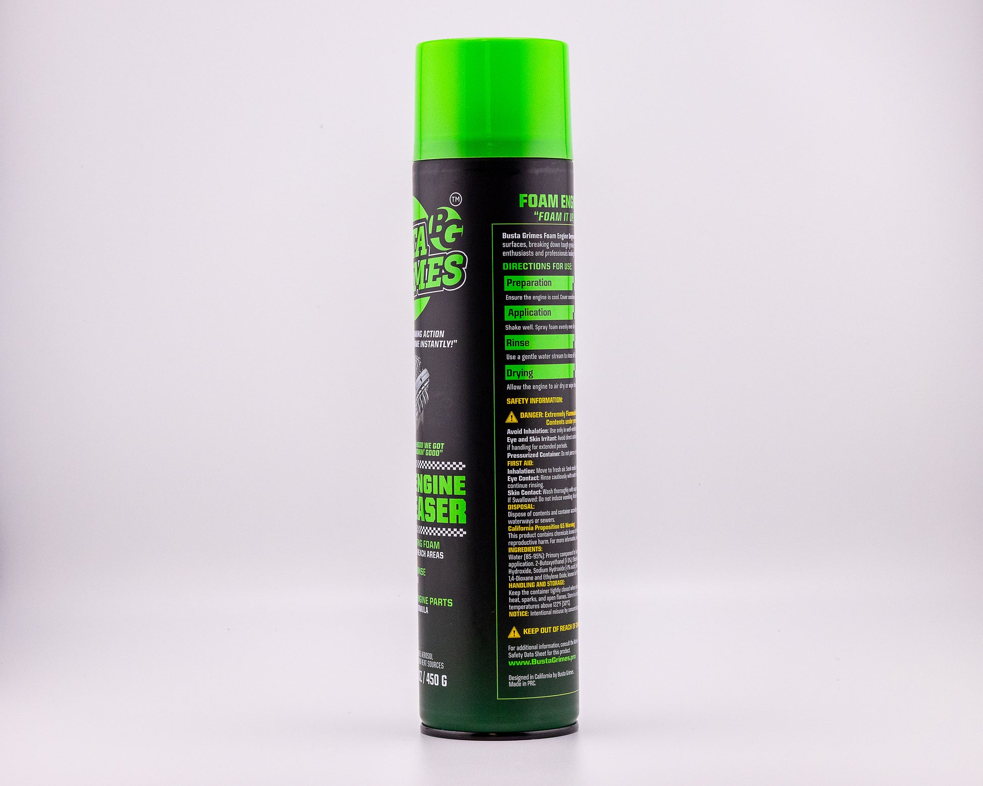 BG Foam Engine Degreaser clings, lifts, and removes the toughest grease, oil, and grime from engines, tools, and industrial equipment. The thick foaming action penetrates deep into hard-to-reach areas, breaking down contaminants without scrubbing. Fast-rinsing, non-corrosive formula safe for most engine components. Pro mechanics’ choice for a showroom-clean engine bay.