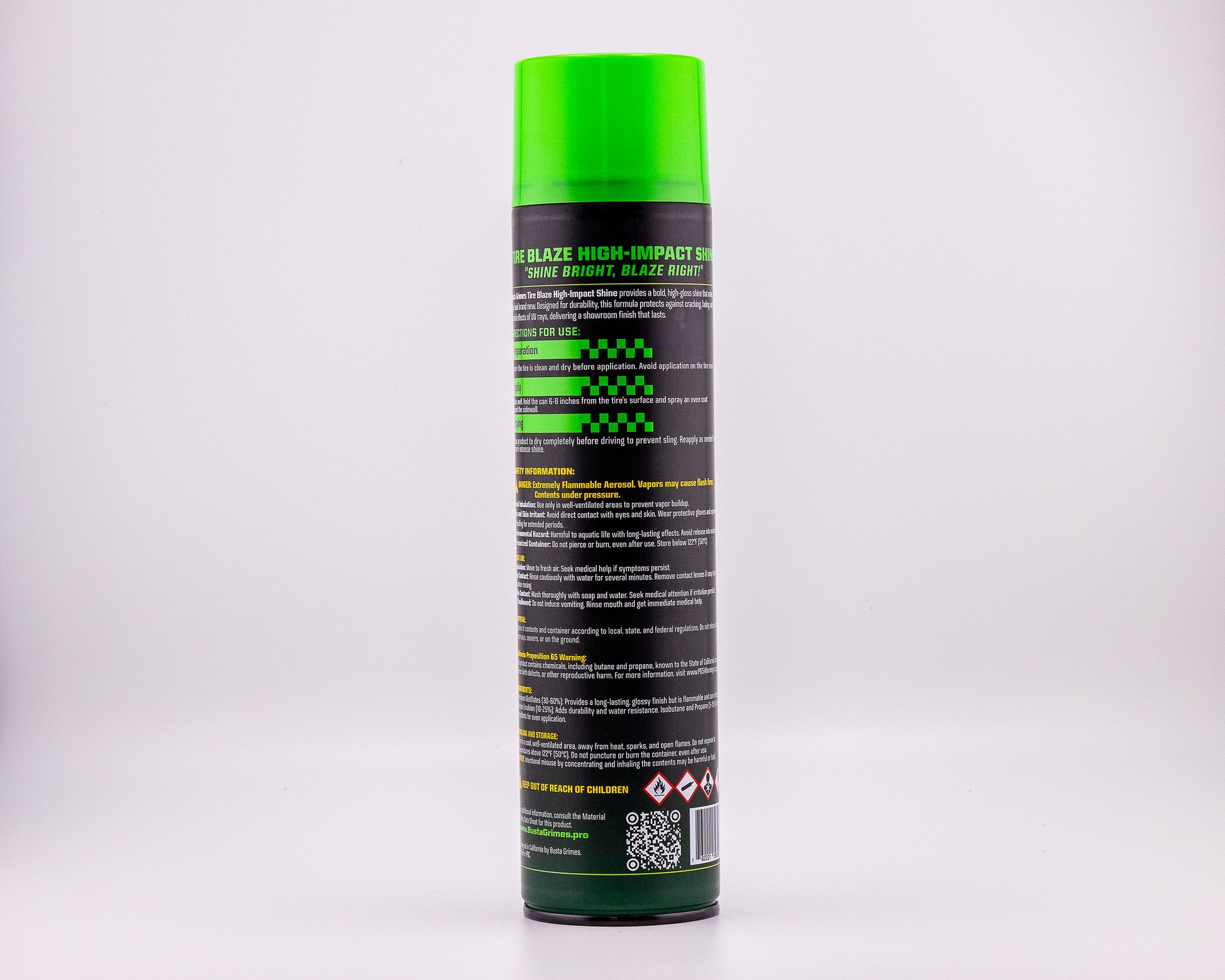 Turn heads with BG Tire Blaze, the ultimate high-gloss tire shine and protectant engineered for long-lasting, deep black shine without the greasy mess. Water-resistant, UV-protected, and grime-repelling—BG Tire Blaze keeps your ride looking fresh on the street, at the show, or on the track.